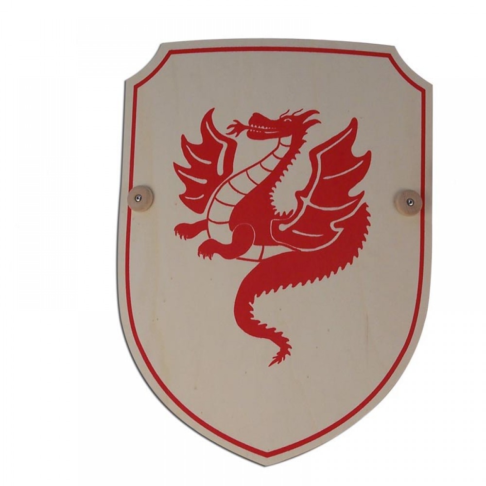 Un bouclier en bois portant les armoiries du dragon, pour jouer sans danger en étant bien protégé.