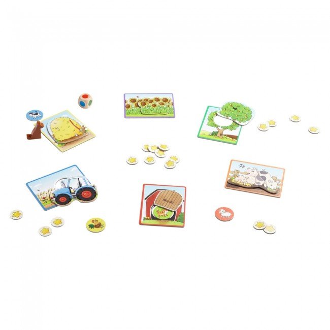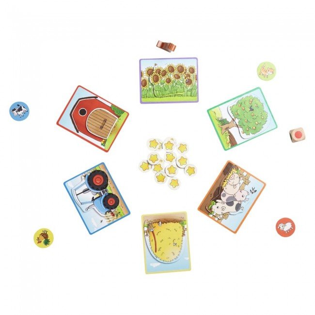 À la ferme, les animaux jouent à cache-cache : ils veulent trouver la meilleure cachette. Les joueurs doivent les chercher dans la meule de foin, au milieu des arbres ou dans les étables pour retrouver un maximum d’animaux. Léo, le chien de la ferme, les aide à accomplir cette mission. Le joueur qui trouve en premier cinq animaux a gagné !