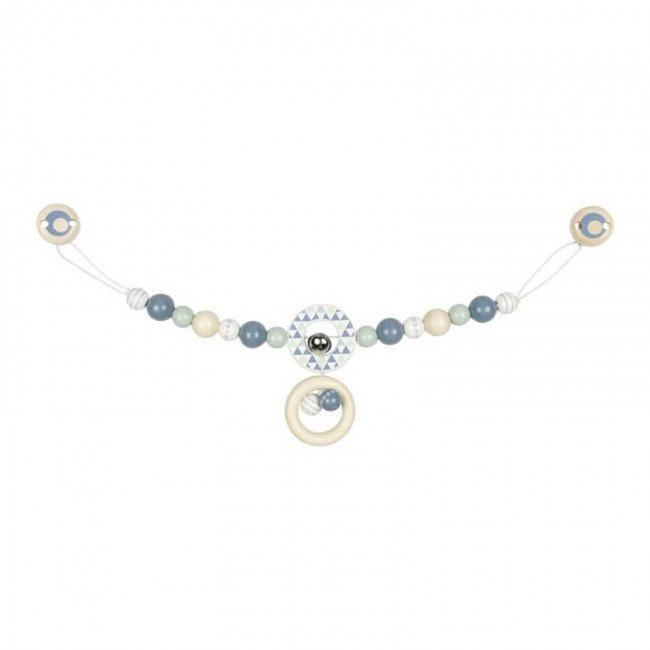 Une chaîne pour poussette en bois qui accompagnera bébé dans la découverte du monde qui l'entoure. Facile à accrocher sur une poussette ou un landau grâce aux clips, cette chaîne deviendra rapidement indispensable lors de vos promenades.