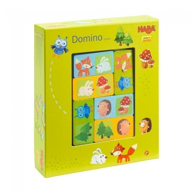 Un jeu de dominos fabriqué en Allemagne par Haba.