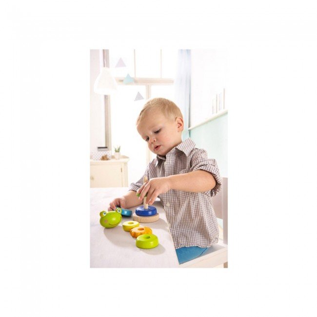 Une jolie Grenouille à reconstituer avec les 7 pièces en bois colorées. Ce jouet en bois à empiler est composé d'une tige et de 7 pièces en bois à enficher en fonction de ses envies ou en respectant le diamètre des anneaux. Un jeu en bois stimulant la motricité fine.