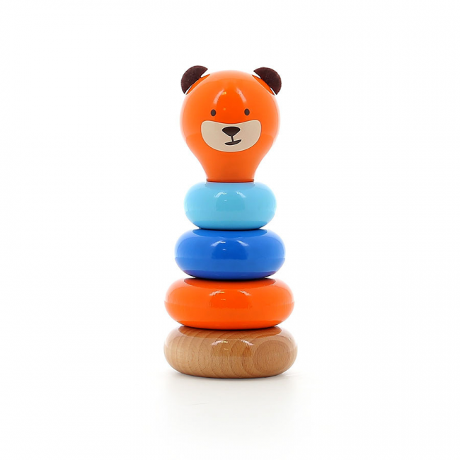 Marcel l'ours, un empilable en bois massif laqué composé de 5 pièces. Les 5 pièces en bois sont à empiler les unes sur les autres en plaçant la tête avec les oreilles en feutrine au sommet. L'empilable ainsi formé, pourra ensuite décorer joyeusement la chambre de votre enfant.