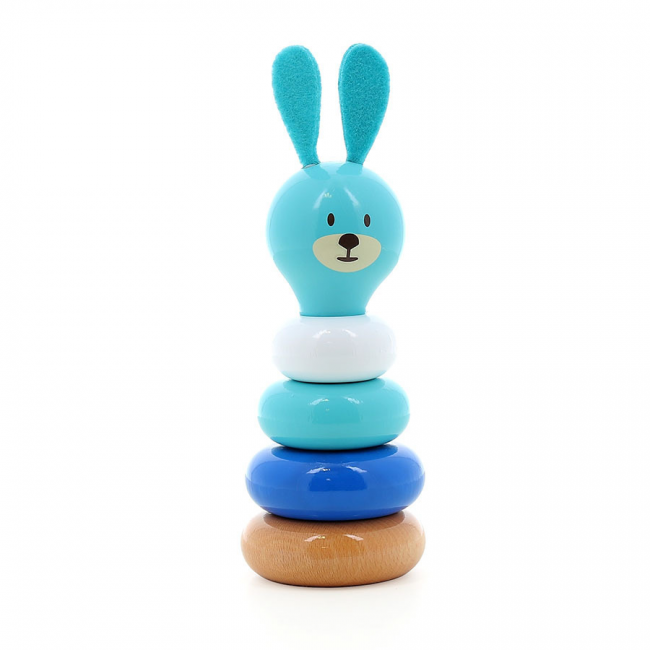 Raoul le lapin, un empilable en bois massif laqué composé de 5 pièces. Les 5 pièces en bois sont à empiler les unes sur les autres en plaçant la tête avec les oreilles en feutrine au sommet. L'empilable ainsi formé, pourra ensuite décorer joyeusement la chambre de votre enfant.