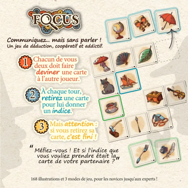 Communiquez...mais sans parler ! Un jeu de déduction coopératif et addictif pour 2 joueurs. 168 illustrations et 3 modes de jeux pour les novices jusqu'aux experts !
