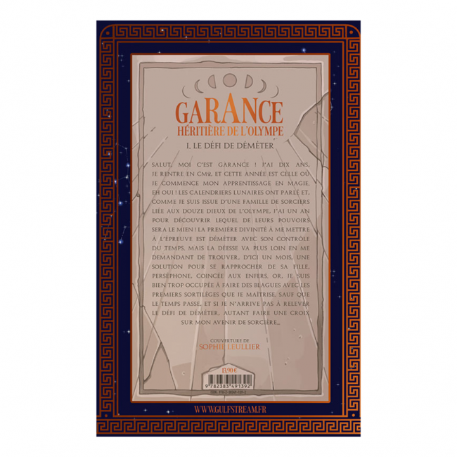 Résumé : Salut, moi c’est Garance ! J’ai dix ans, je rentre en cm2, et cette année est celle où je commence mon apprentissage en magie. Eh oui ! Les calendriers lunaires ont parlé et, comme je suis issue d’une famille de sorciers liée aux douze dieux de l’olympe, j’ai un an pour découvrir lequel de leurs pouvoirs sera le mien ! La première divinité à me mettre à l’épreuve est déméter avec son contrôle du temps. Mais la déesse va plus loin en me demandant de trouver, d’ici un mois, une solution pour se rapprocher de sa fille, Perséphone, coincée aux enfers. Or, je suis bien trop occupée à faire des blagues avec les premiers sortilèges que je maîtrise. Sauf que le temps passe, et si je n’arrive pas à relever le défi de Déméter, autant faire une croix sur mon avenir de sorcière…