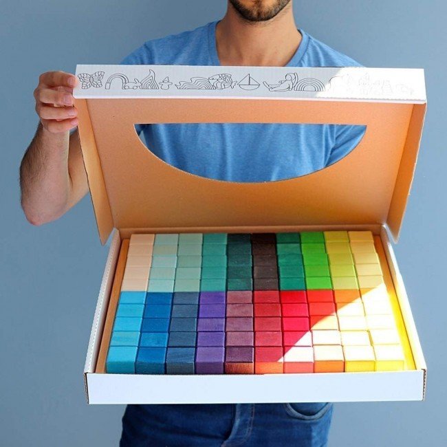*L'entreprise Grimm's fabrique des jouets en bois au design minimaliste laissant libre cours au développement et à la créativité des enfants. Les jouets sont conçus particulièrement pour travailler à l'école maternelle et primaire,