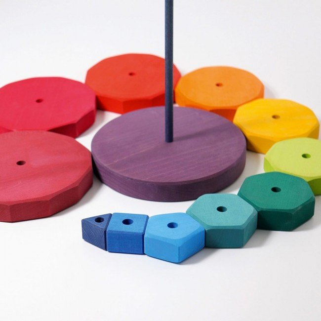 *L'entreprise Grimm's fabrique des jouets en bois au design minimaliste laissant libre cours au développement et à la créativité des enfants. Les jouets sont conçus particulièrement pour travailler à l'école maternelle et primaire,