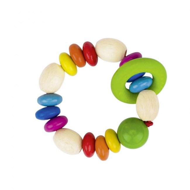 Cet anneau à élastique, fabriqué en Allemagne par Heimess, est facile à manipuler pour les petites mains de bébé.