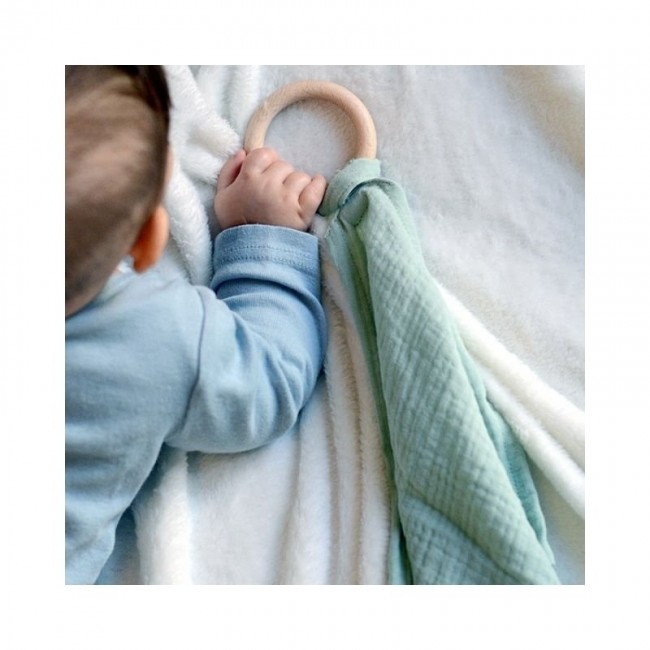 Le hochet en bois naturel de la marque aPunt Barcelona est fabriqué en gaze de coton biologique couleur bleu océan. Le coton bio est certifié GOTS et le bois est de l'hêtre certifié PEFC. Ce hochet très doux et son tissu tout plat est idéal pour un cadeau de naissance. Tous les artciles de la marque aPunt Barcelona sont fabriqués en Espagne, à Barcelone.
