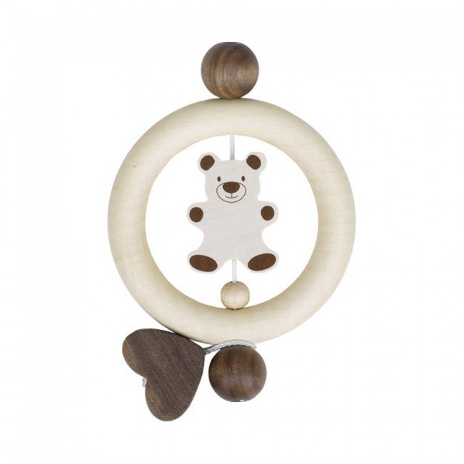 Un premier jouet en bois idéal pour l'éveil des sens de bébé. Facile à agripper, ce hochet est en bois naturel avec un petit ourson qui tourne sur son axe.
