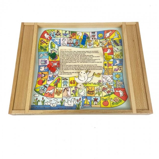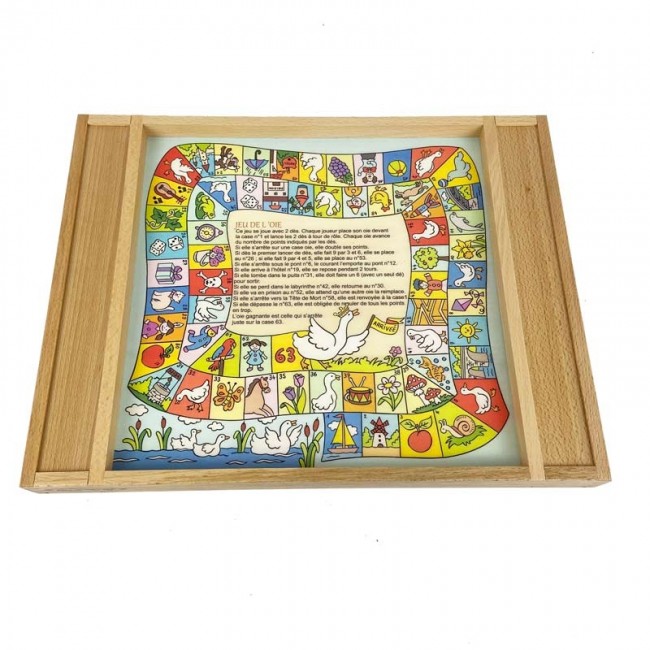 Un plateau de jeux imprimé sur les deux faces. Une face jeu de l'oie et une face jeu de petits chevaux. Faites découvrir les jeux de votre enfance à vos enfants et amusez-vous en famille.