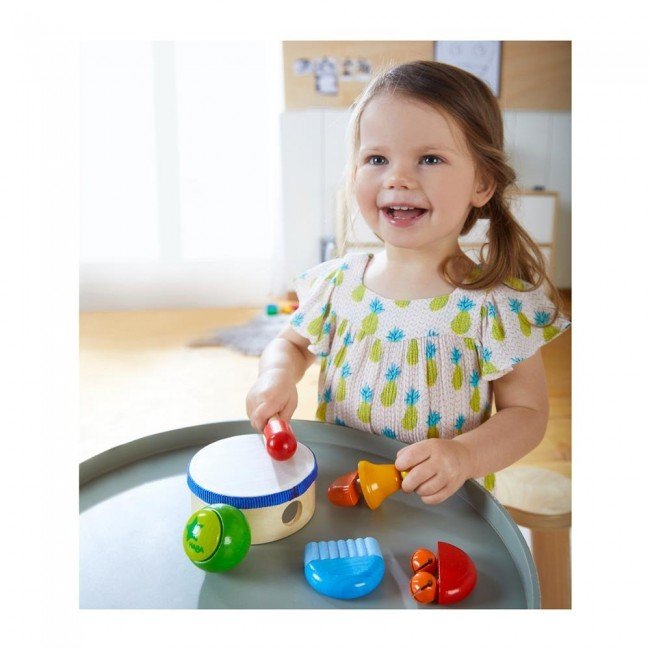 Un ensemble de jeux musicaux comprenant 5 instruments en bois pour découvrir les sons dès l'âge de 2 ans. Votre enfant va adorer faire de la musique en stimulant son éveil musical et sa motricité fine.