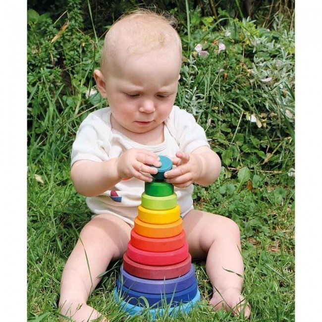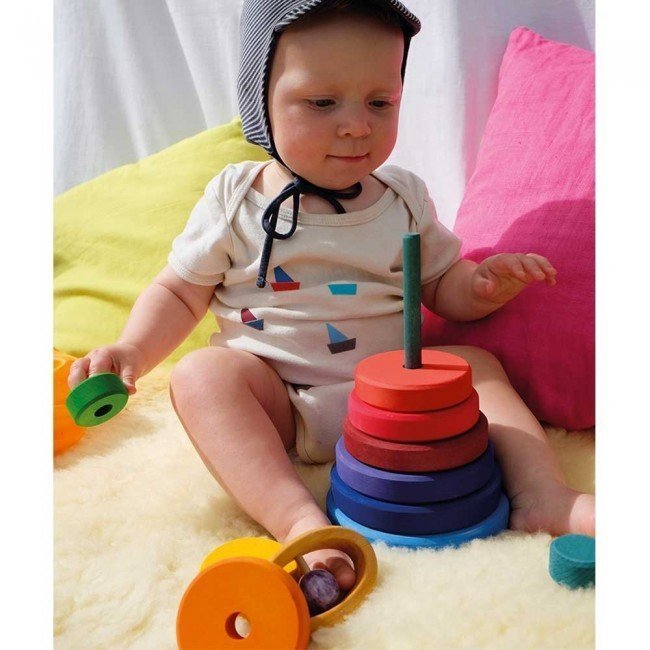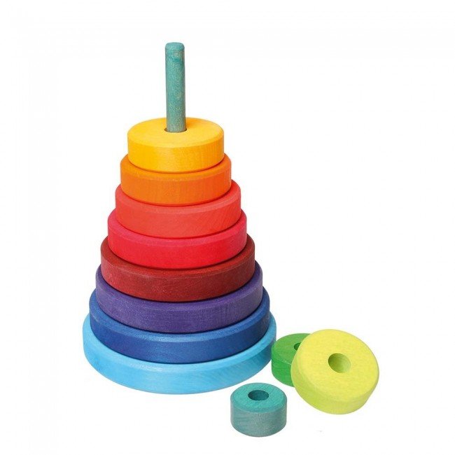 Une grande pyramide avec 11 pièces colorées à enficher sur une tige. Un jeu d'apprentissage permettant de développer la motricité fine tout en s'amusant à trier, empiler et construire.