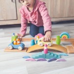 *L'entreprise Grimm's fabrique des jouets en bois au design minimaliste laissant libre cours au développement et à la créativité des enfants. Les jouets sont conçus particulièrement pour travailler à l'école maternelle et primaire.