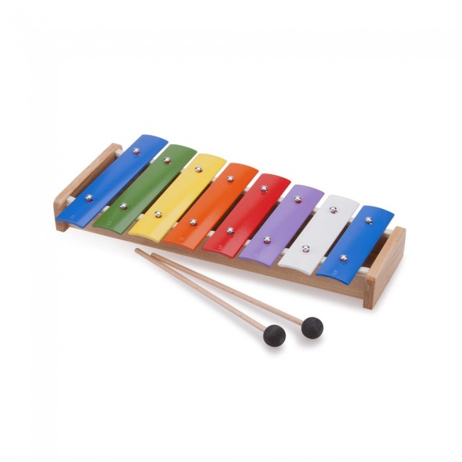 Un métallophone composé de 8 touches à la sonorité exceptionnelle, pour les amoureux des belles mélodies. Différent d'un xylophone traditionnel, ce métallophone restitue les sons à la perfection grâce à ses touches reposant sur une véritable caisse en bois fermée.