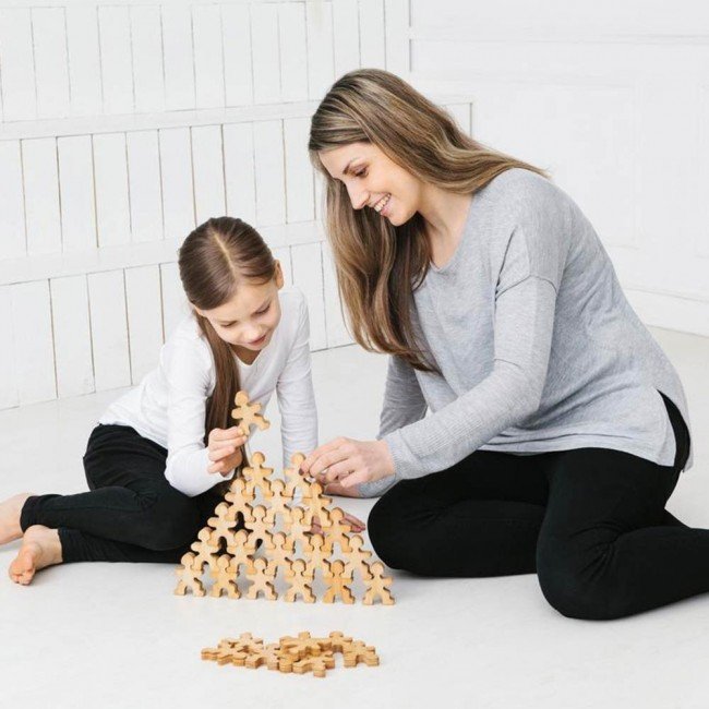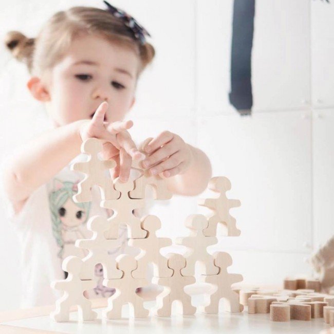 Un jeu libre en bois fabriqué en Lettonie par l'entreprise familiale Flockmen.