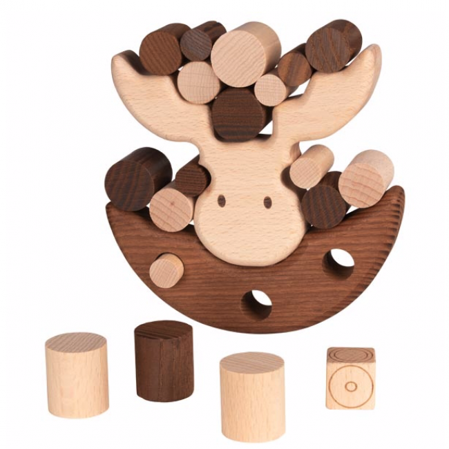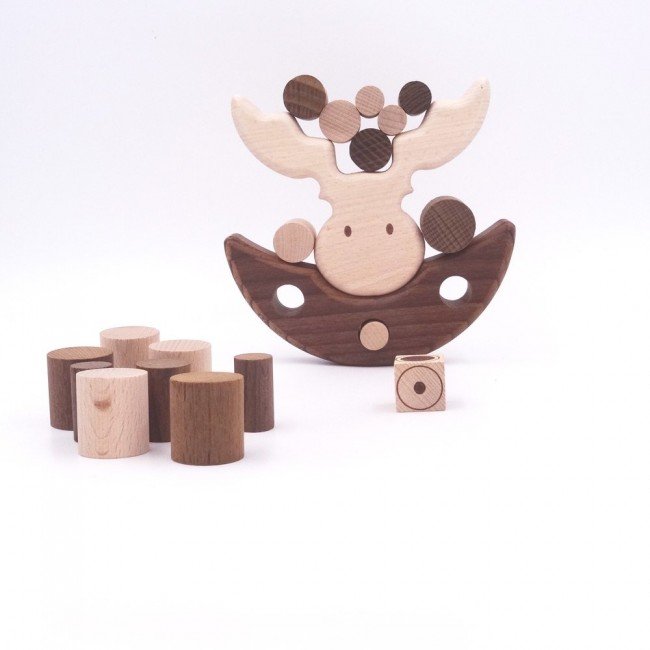 Placez l'élan sur une surface plate, préparez les rondins et le dé. Lancez le dé chacun votre tour et en fonction des indications de celui-ci, placez le rondin correspondant sur l'élan sans le faire basculer. Le joueur qui fait tomber les rondins est éliminé et les autres joueurs continuent la partie.