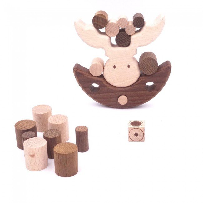 L'élan équilibriste, un véritable jeu d'adresse pour s'amuser seul ou jusqu'à 3 joueurs. Un jeu pour les enfant dès 4 ans et sans limite d'âge. Lorsque vous ne jouez plus, ne laissez pas ce bel élan dans sa boîte, il fera une belle décoration.