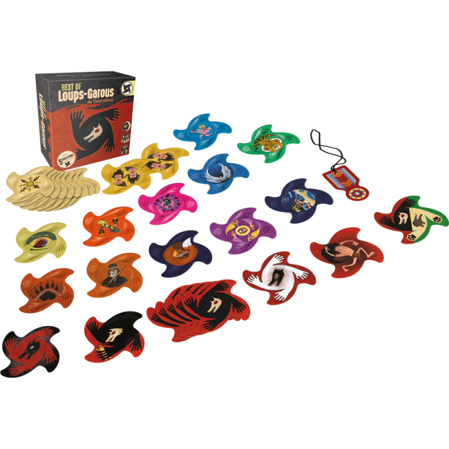 Retrouvez 28 personnages qui ont marqué les centaines de milliers de parties de Loups-Garous de Thiercelieux, parmi lesquels le Grand Méchant Loup, l’Infect Père des Loups, le Loups Blanc ou encore l’Enfant Sauvage.