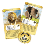 - 68 cartes Défis dont 2 cartes totem brillantes exclusives : l’Éléphant d’Afrique et le Lion d’Afrique