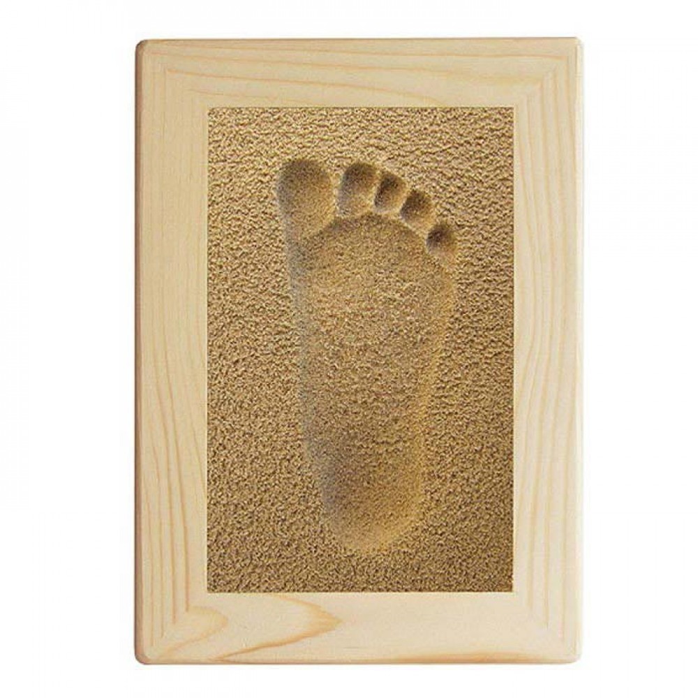 Ce coffret permet de réaliser une empreinte souvenir de la main ou du pied de bébé dans du sable naturel (convient jusqu'à 3 ans) très facilement : Mélangez simplement le sable et la colle spéciale (à base d’huile de lin) et vous obtenez une pâte onctueuse et assez douce pour la main ou le pied de l’enfant. Prenez votre temps : vous avez une heure de temps devant vous pour réaliser l’empreinte. Il suffit de presser légèrement la petite main ou le petit pied de bébé dans le mélange, retirez et l’empreinte est faite (un peu comme à la plage avec du sable humide). Si vous n’êtes pas satisfait ou si l’enfant a bougé, vous pouvez refaire plusieurs fois l’empreinte pendant une heure. Rajoutez du sable et re-lissez la surface. Laissez sécher 48 heures et votre empreinte est figée à vie !