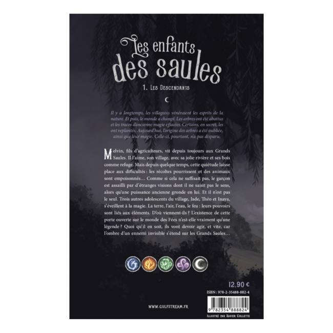 La terre, l’air, l’eau, le feu : leurs pouvoirs sont liés aux éléments. D’où viennent-ils? L’existence de cette porte ouverte sur le monde des Fées n’est-elle vraiment qu’une légende ? Quoi qu’il en soit, ils vont devoir agir, et vite, car l’ombre d’un ennemi invisible s’étend sur les Grands Saules…