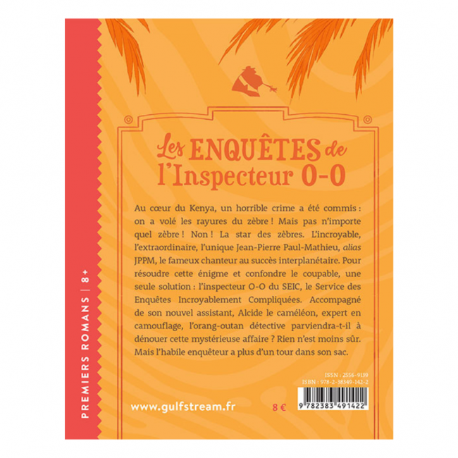 Résumé : Au coeur du Kenya, un horrible crime a été commis : on a volé les rayures du zèbre ! Mais pas n'importe quel zèbre ! Non ! La star des zèbres. L'incroyable, l'extraordinaire, l'unique Jean-Pierre Paul-Mathieu, alias JPPM, le fameux chanteur au succès interplanétaire. Pour résoudre cette énigme et confondre le coupable, une seule solution : l'inspecteur 0-0 du SEIC, le Service des Enquêtes Incroyablement Compliquées. Accompagné de son nouvel assistant, Alcide le caméléon, expert en camouflage, l'orang-outan détective parviendra-t-il à dénouer cette mystérieuse affaire ? Rien n'est moins sûr. Mais l'habile enquêteur a plus d'un tour dans son sac.