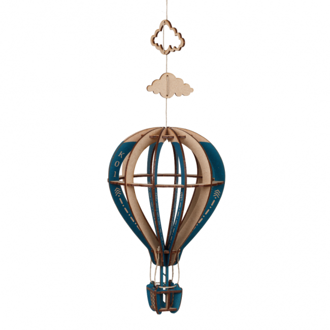 Retrouvez la maquette Montgolfière en couleur : bleu, rouge et bois.