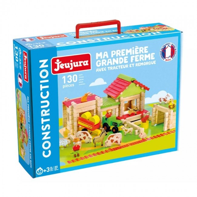 Ma première grande ferme avec tracteur de 130 pièces de Jeujura est un jeu de construction pour les enfants à partir de 3 ans sur l’univers de la ferme.