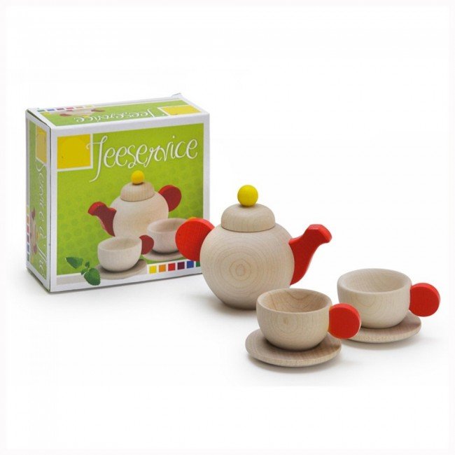 Un service à thé idéal pour s'amuser à la dînette avec les ami(e)s. Ce service contient 1 théière en bois aux belles formes arrondies ainsi que 2 tasses et sous-tasses.