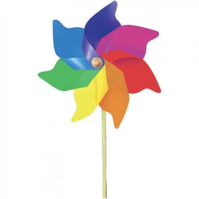 Un moulin à vent pour jouer en plein air avec le vent. Ce moulin à vent peut être placé à l'extérieur grâce à sa tige en bois et sa fleur en plastique