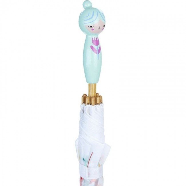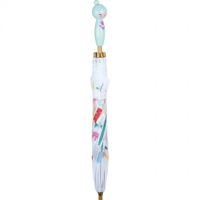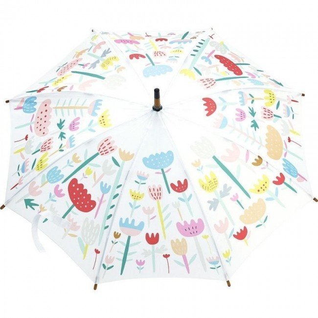 Ce parapluie Vilac avec sa toile fleurie va ensoleiller les journées pluvieuses et protéger vos enfants des intempéries. Illustré par Suzy Ultman, ce parapluie avec sa toile blanche remplie de fleurs colorées et son manche réprésentant une figurine bleu en bois laqué est très robuste grâce à sa structure en carbone .