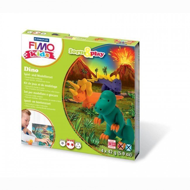 Les kit de pâtes Fimo Staedtler sont les équipements parfaits des jeunes bricolos en herbe. La pâte est modelée, puis on la laisse durcir au four pour obtenir des dinosaures super originaux !