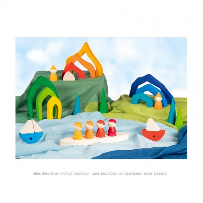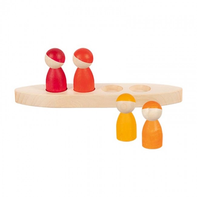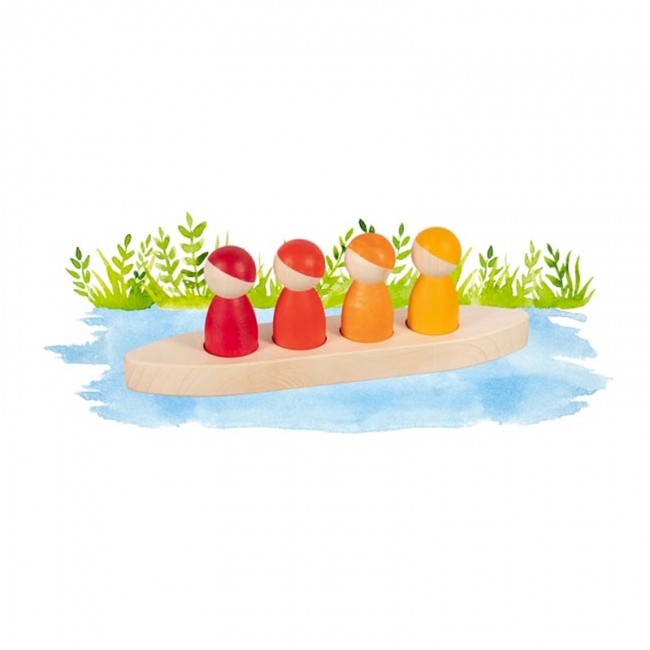 Ces 4 petits personnages colorés se retrouvent sur une barque pour une promenade en mer, en rivière, sur un lac...