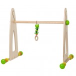 Ce portique d'activités en bois se règle en hauteur très facilement. Placez le au dessus de la couverture de jeu de bébé ou de son transat. Un premier jeu d'éveil idéal pour favoriser la préhension.