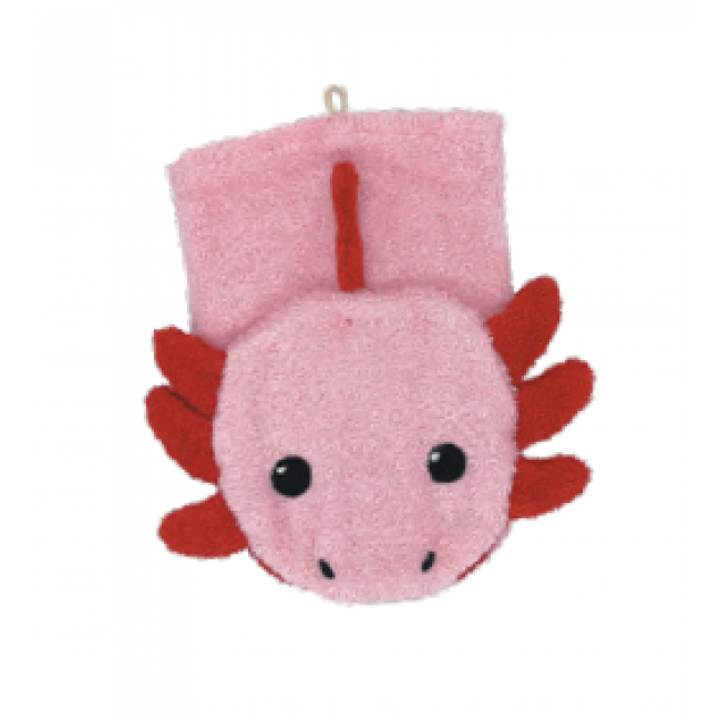 Un gant de toilette et une marionnette...Cet Axolotl vous accompagnera au quotidien pour le rituel du bain avec votre enfant. Pour ne pas être obligé de choisir entre s'amuser et se laver dans le bain.