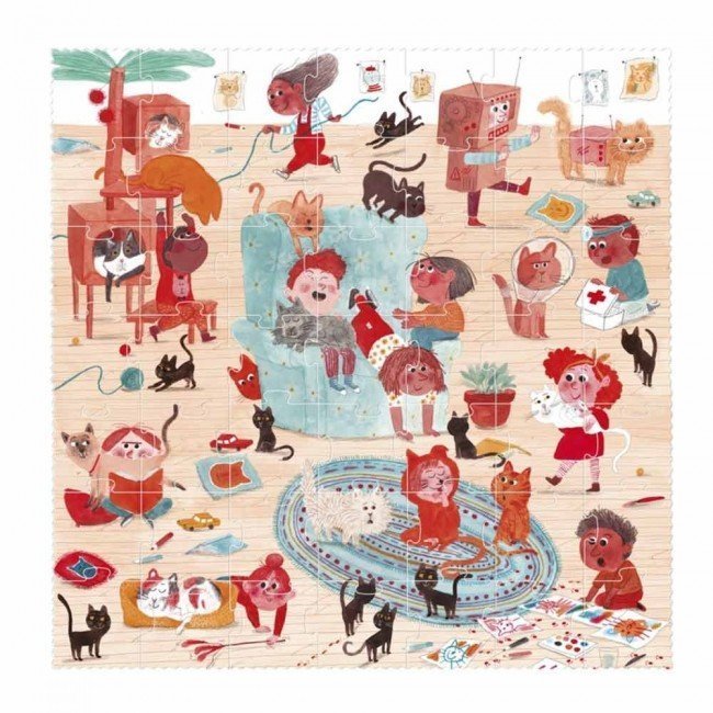 Des scènes de vie avec des chats, ce puzzle de 49 pièces est adapté pour les enfants de 3 à 6 ans. Ce puzzle représente des chats à travers une illustration colorée et ludique. Illustré par Marta Altés.