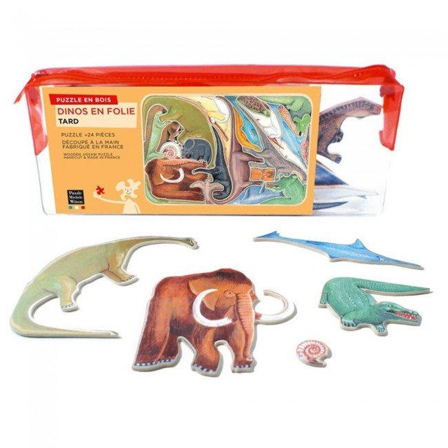 Puzzle en bois Les Dinos en folie 24 pièces de Michèle Wilson