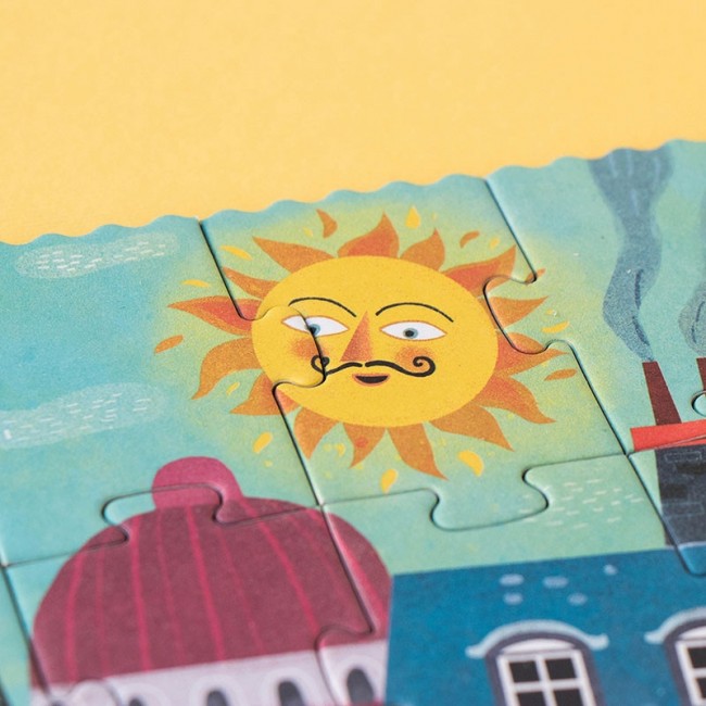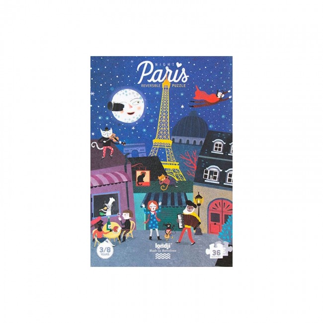 Ce puzzle nuit et jour "Night and day" représente la ville de Paris de nuit comme de jour avec ses activités multiples. Un puzzle très coloré et original qui peut être réalisé d'un côté comme de l'autre avec le contraste de la ville de Paris de nuit et de jour. Il est consitué de 36 pièces qui sont fabriquées en carton épais issu de forêts durablement gérées. Le puzzle convient aux enfant de 5 à 8 ans.