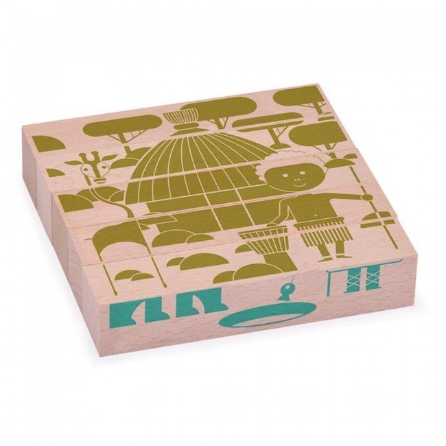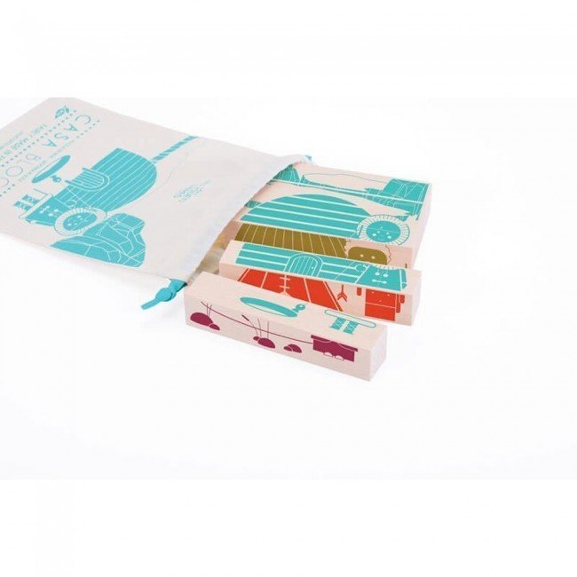 Casa Blocks, un puzzle en bois pour découvrir les habitats du monde. Un puzzle en bois premier âge pour s'amuser à reconstituer 4 images. Ces cinq blocs en bois sont imprimés sur 4 faces avec des encres à base d'eau.