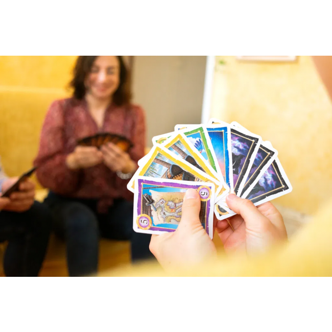 Skull King se joue en 10 manches. Une carte est distribuée à chaque joueur à la première manche, deux sont distribuées à la deuxième, et ainsi de suite jusqu’à 10 cartes à la dixième manche. Après avoir pris connaissance de vos cartes, estimez le nombre exact de plis que vous pensez pouvoir remporter dans cette manche. Souvenez-vous : plus la valeur d’une carte est élevée, plus vous avez de chances de gagner un pli. Une fois que tout le monde est prêt, frappez trois fois du poing sur la table en criant à l’unisson “Yo-ho-ho !”. Au troisième coup, tendez chacun un nombre de doigts égal à votre mise ou un poing fermé si vous misez sur zéro. Utilisez vos deux cartes de rappel des mises. Placez-les l’une sur l’autre pour indiquer votre mise. Une fois les mises terminées, le joueur à la gauche du donneur lance le premier pli en jouant une carte face visible au centre de la table. Dans le sens horaire, chaque autre joueur joue une carte. La personne qui a joué la carte la plus forte remporte le pli et rassemble les cartes gagnées devant elle. Ensuite, elle joue une carte pour entamer le pli suivant. La partie se poursuit jusqu’à ce que tous les plis de la manche aient été joués. Au terme de la dixième manche, les scores finaux sont calculés. Le joueur avec le meilleur score est déclaré vainqueur et est élu Capitaine Pirate des Sept Mers !