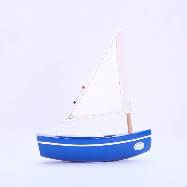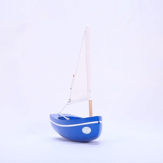 Découvrez un joli bateau en bois (hêtre) fabriqué à la main en Bretagne. Bois issu des forêts bretonnes. Il est équipé d'une voile en coton de type bermudéen.