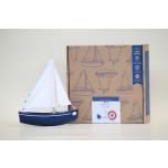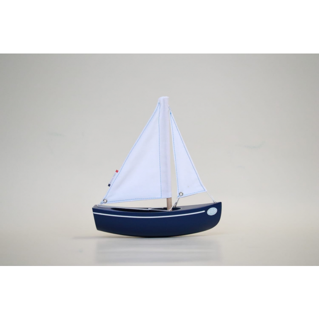 Voiier en bois Le Sloop voile blanche coque bleu marine des Bateaux Tirot