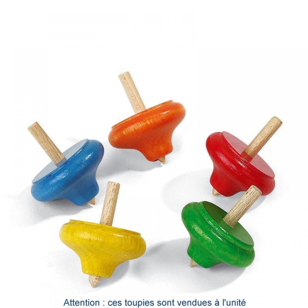 Une toupie en bois classique dite à viret. Faites la tourner en la tenant du bout des doigts et observez son mouvement élégant.
