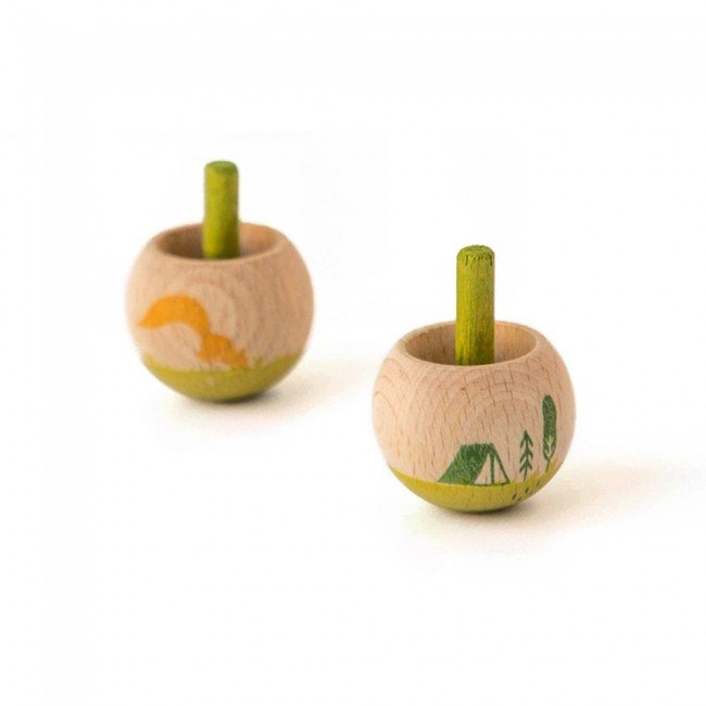 Une toupie en bois magique qui se retourne quand on la tourne rapidement sur sa tête. Un bel effet visuel pour ces toupies en bois naturel au décor sur le thème de la mer (bleu) ou de la nature (vert). Option de couleur au choix.