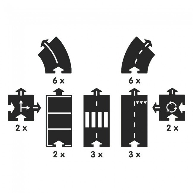 Le circuit de voitures Autoroute 24 pièces de WayToPlay est idéal pour créer de nombreux circuits toujours différents. Les pièces en caoutchouc durable, flexible et de haute qualité sont facilement emboitables et imprimées en recto-verso. Elles offrent de nombreuses combinaisons de jeux.