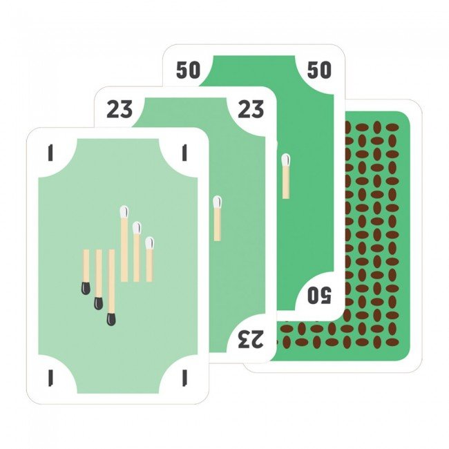 A chaque tour, la plus haute carte gagne des allumettes blanches et la plus basse des noires. Ensuite blanches et noires s'annulent !